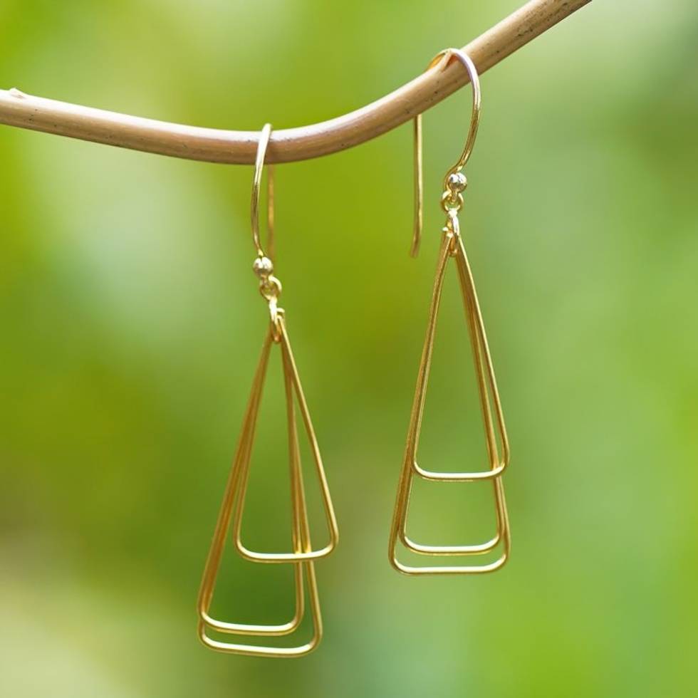 18k Gold-Plated Brass Triangle Dangle Earrings from Bali 'Pyramid Queen' Item ID: 2671763458