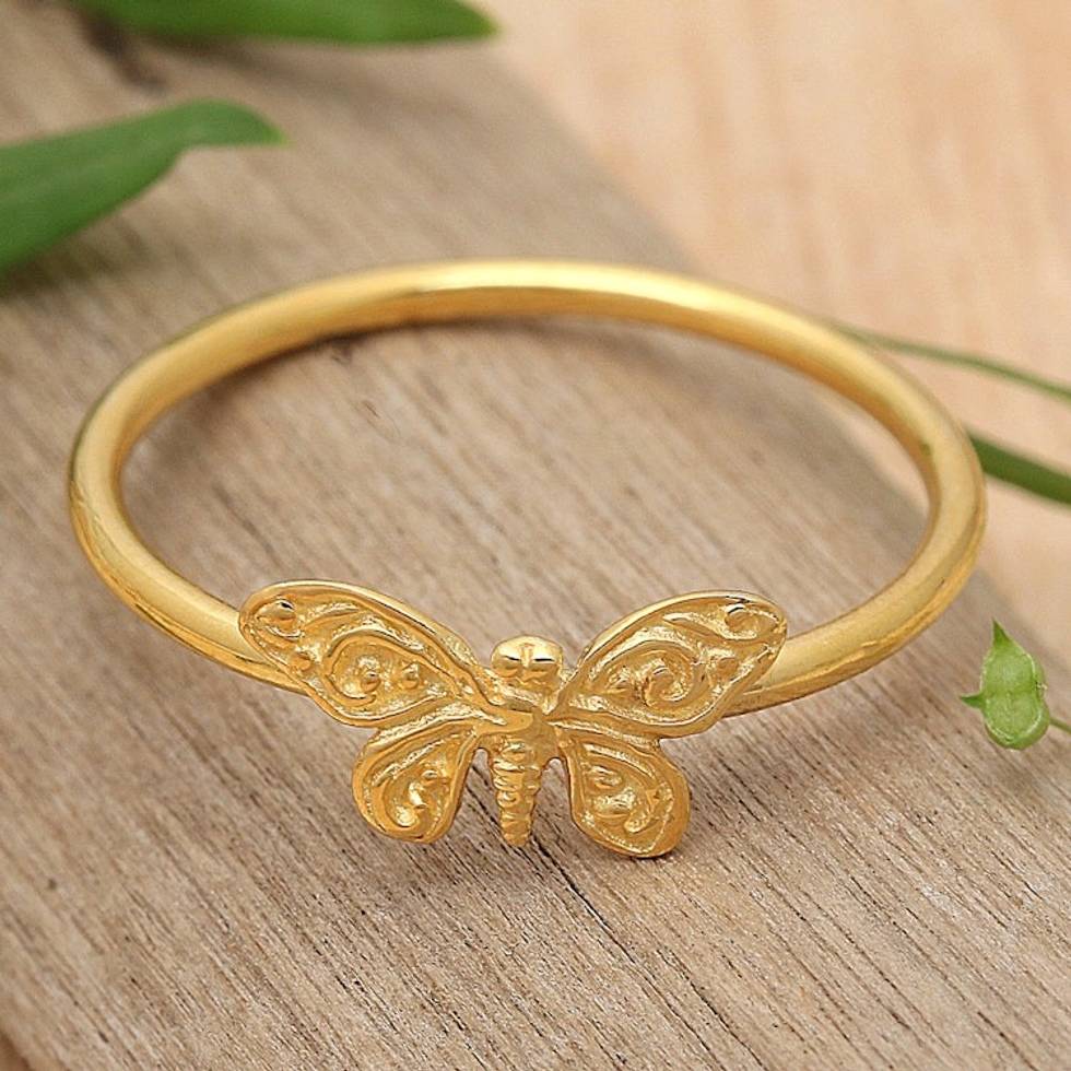 18k Gold-Plated Butterfly Sterling Silver Cocktail Ring 'Hopeful Victories' Item ID: 2671765442