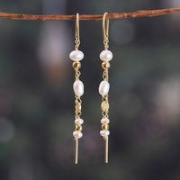 18k Gold-Plated Cream Cultured Pearl Threader Earrings 'Pearly Dance' Item ID: 2671782496