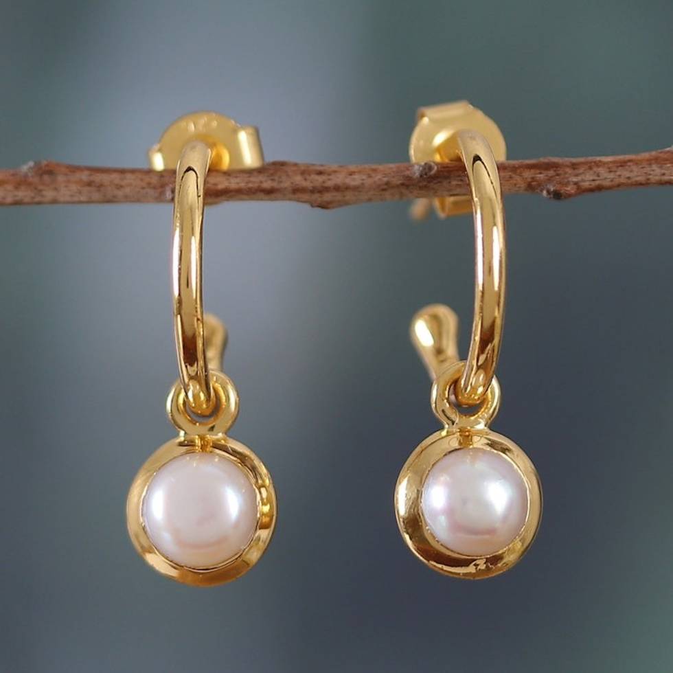 18k Gold-Plated Cultured Pearl Half-Hoop Dangle Earrings 'Eden's Romance' Item ID: 2671625341
