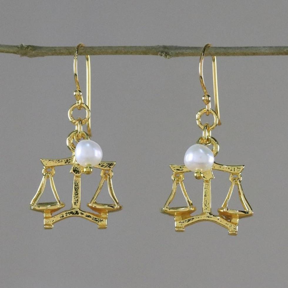 18k Gold Plated Cultured Pearl Libra Earrings from Thailand 'Radiant Libra' Item ID: 2671801216