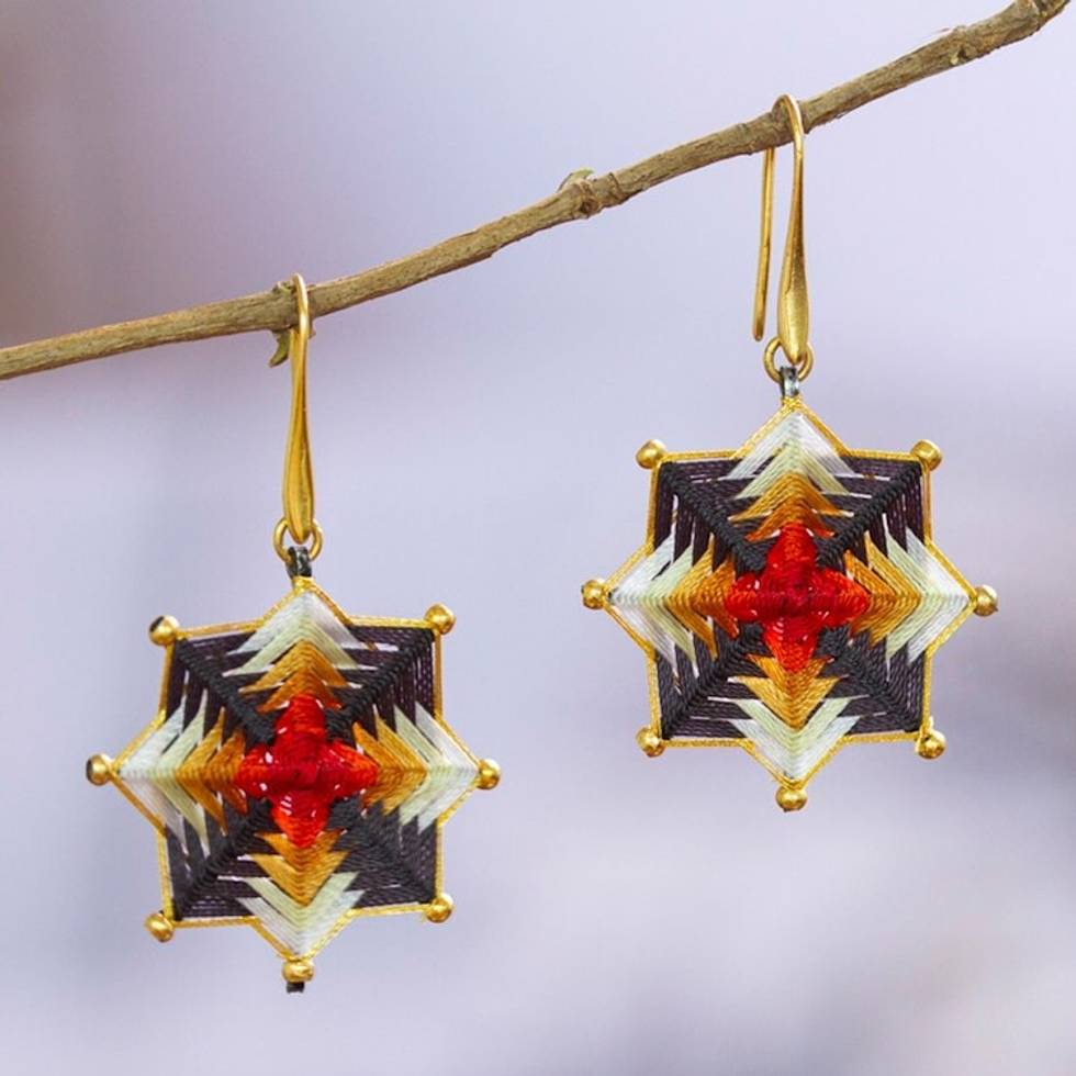 18k Gold-Plated Dangle Earrings with Geometric Design 'Intense Mind' Item ID: 2671807624