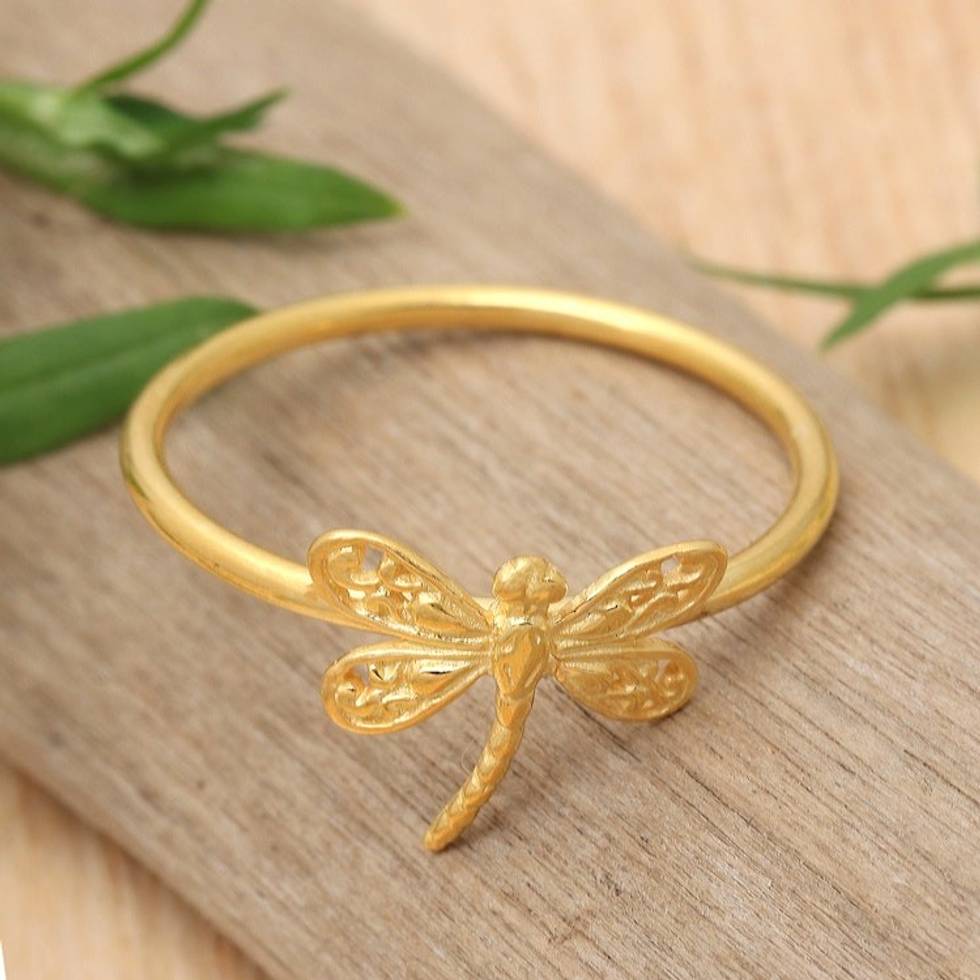 18k Gold-Plated Dragonfly-Shaped Cocktail Ring from Bali 'Sacred Dragonfly' Item ID: 2671765173