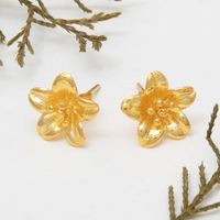18k Gold-Plated Floral Sterling Silver Button Earrings 'Summery Frangipani' Item ID: 2669921874