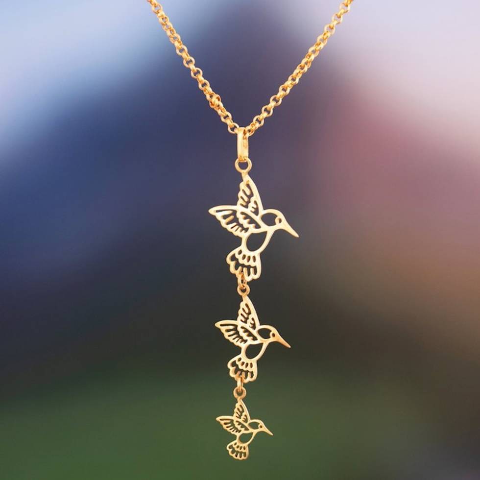 18k Gold-Plated Hummingbird Pendant Necklace from the Andes 'Hummingbird Dance' Item ID: 2671697839
