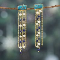 18k Gold-Plated Lapis Lazuli and Pearl Waterfall Earrings 'Cascade Splendor' Item ID: 2671623582