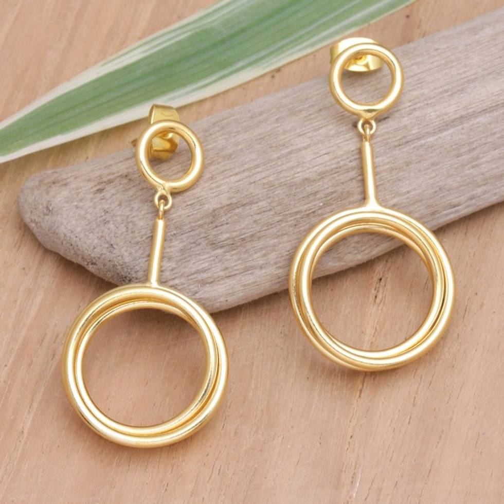 18k Gold-Plated Modern Dangle Earrings from Bali 'Divine Lady' Item ID: 2671763148