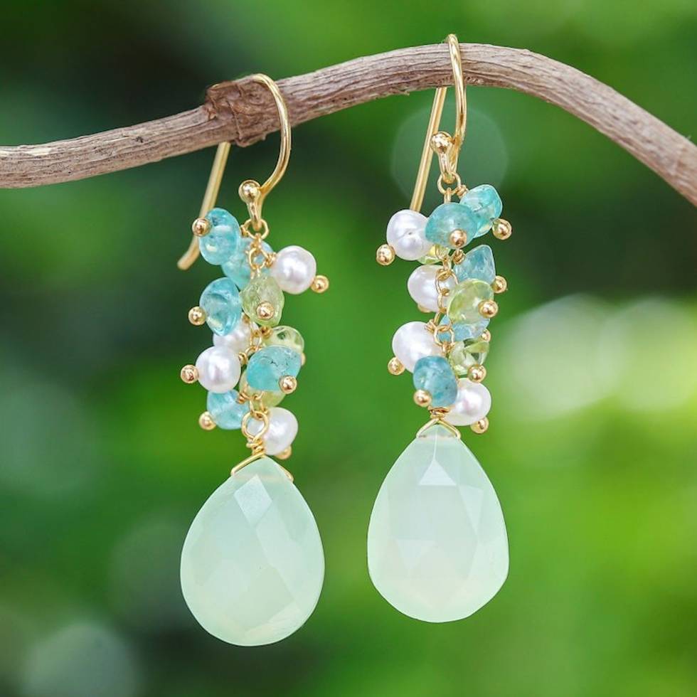 18k Gold-Plated Multi-Gemstone Dangle Earrings from Thailand 'Paradise Blooming' Item ID: 2671641654