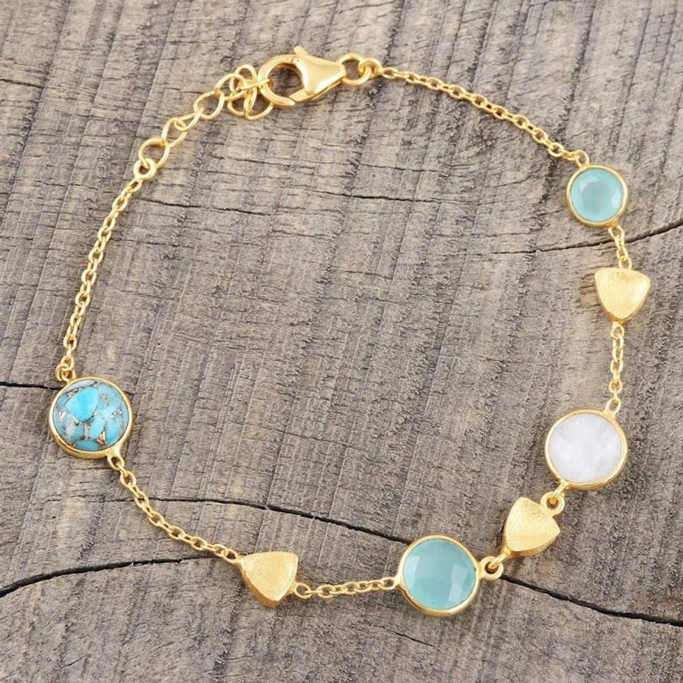 18k Gold Plated Multi Gemstone Station Bracelet 'Golden Glamour' Item ID: 2671625338