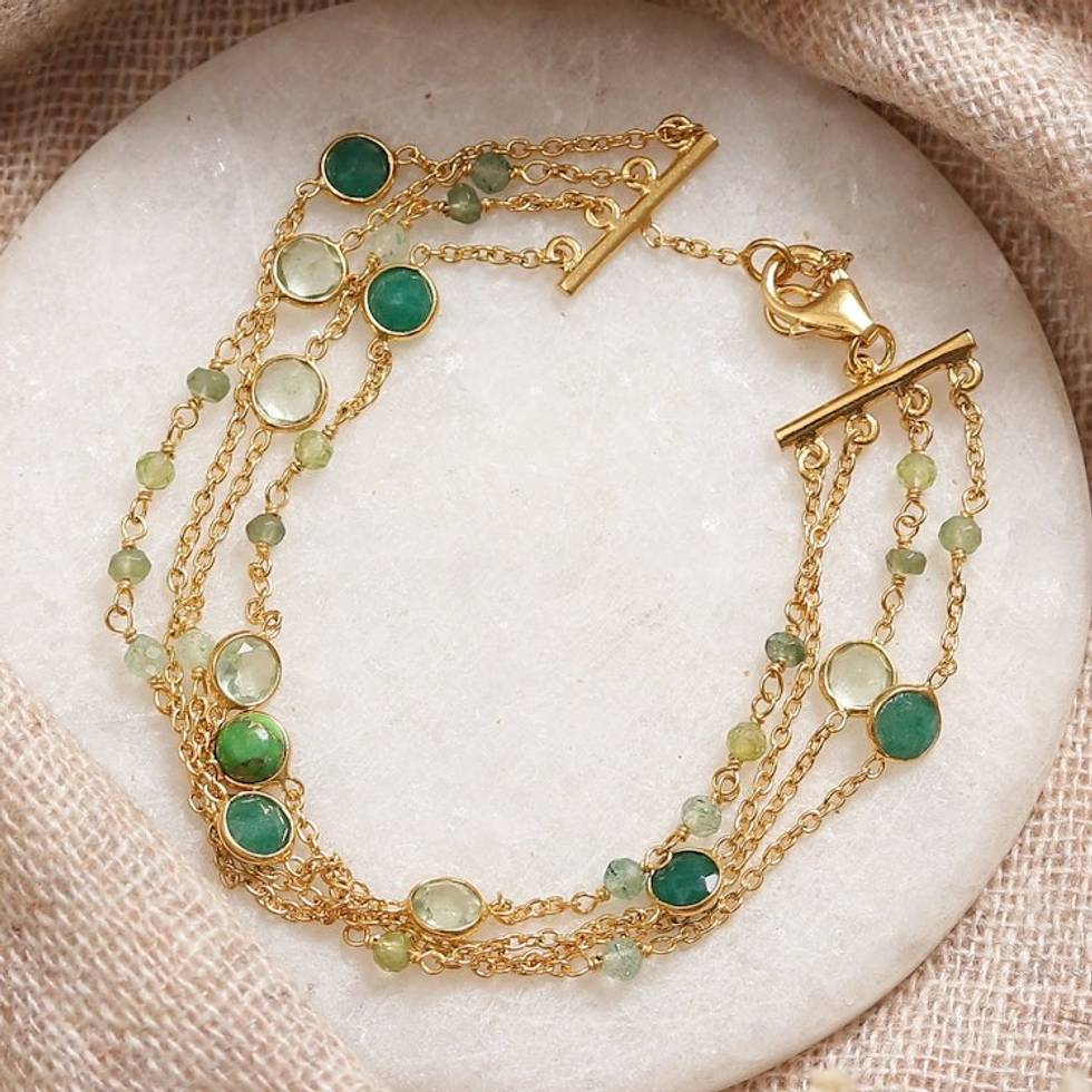 18k Gold-Plated Multi-Gemstone Strand Bracelet from India 'Green Symphony' Item ID: 2671622233