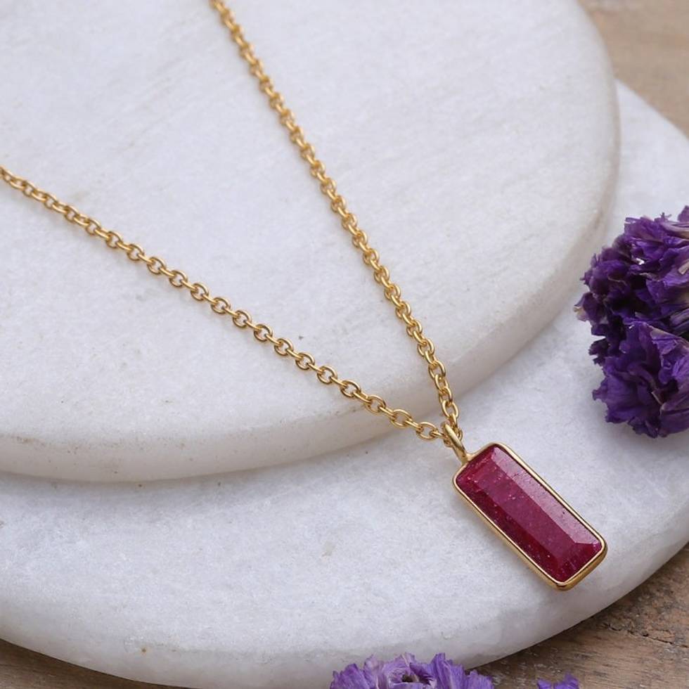 18k Gold-Plated Necklace with Rectangular Ruby Stone Pendant 'Vibrant Glam' Item ID: 2671625725