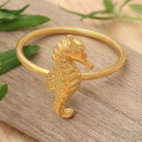 18k Gold-Plated Seahorse-Themed Cocktail Ring 'Seahorse Lineage' Item ID: 2676667225