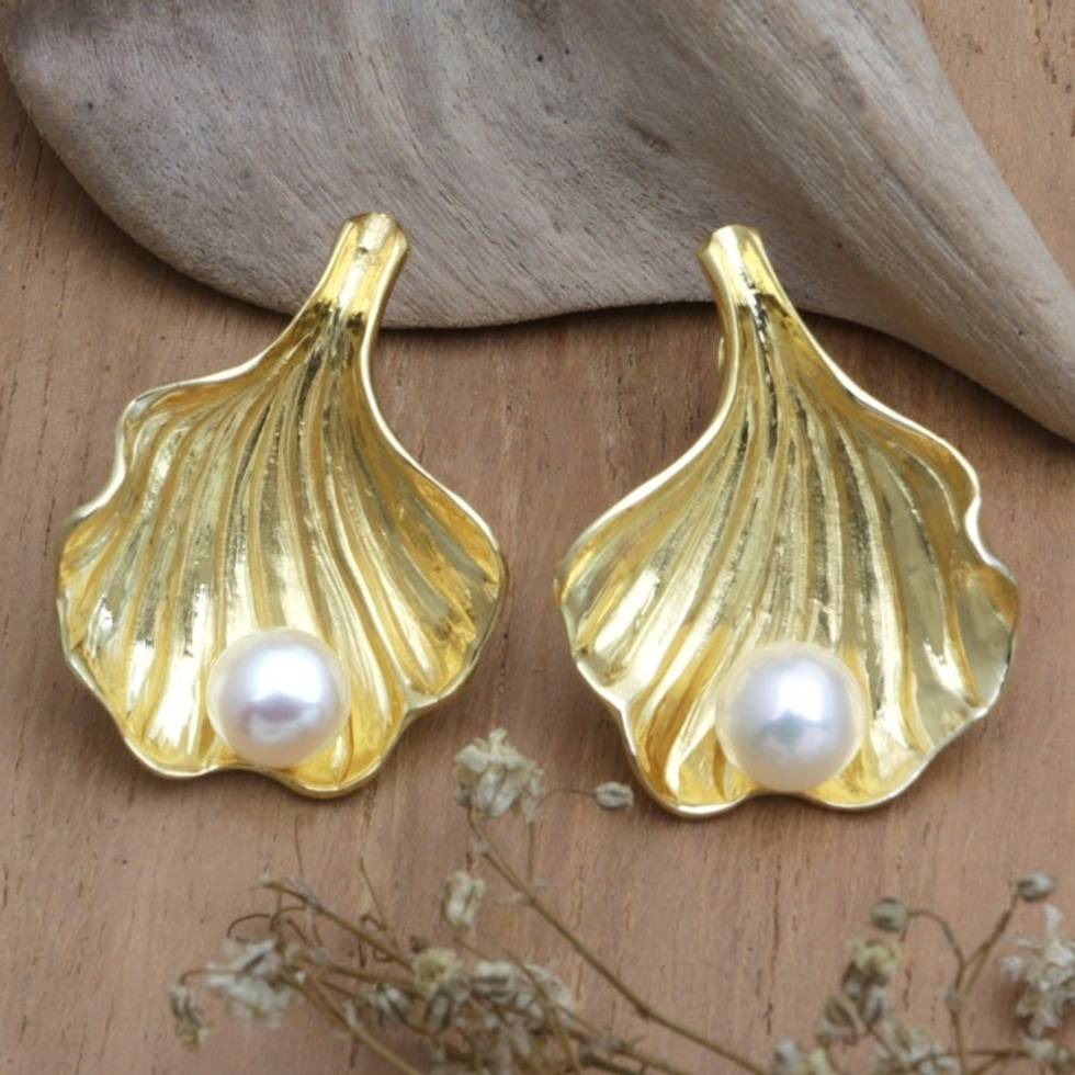 18k Gold-Plated Seashell Drop Earrings with Cultured Pearls 'Marine Treasure' Item ID: 2671748453