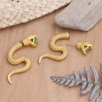 18k Gold-Plated Snake Drop Earrings with Peridot Stones 'Green Snake Attack' Item ID: 2671821669