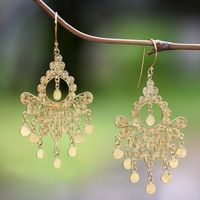 18k Gold Plated Sterling Silver Chandelier Earrings 'Gold Peacock Feather' Item ID: 2670983810