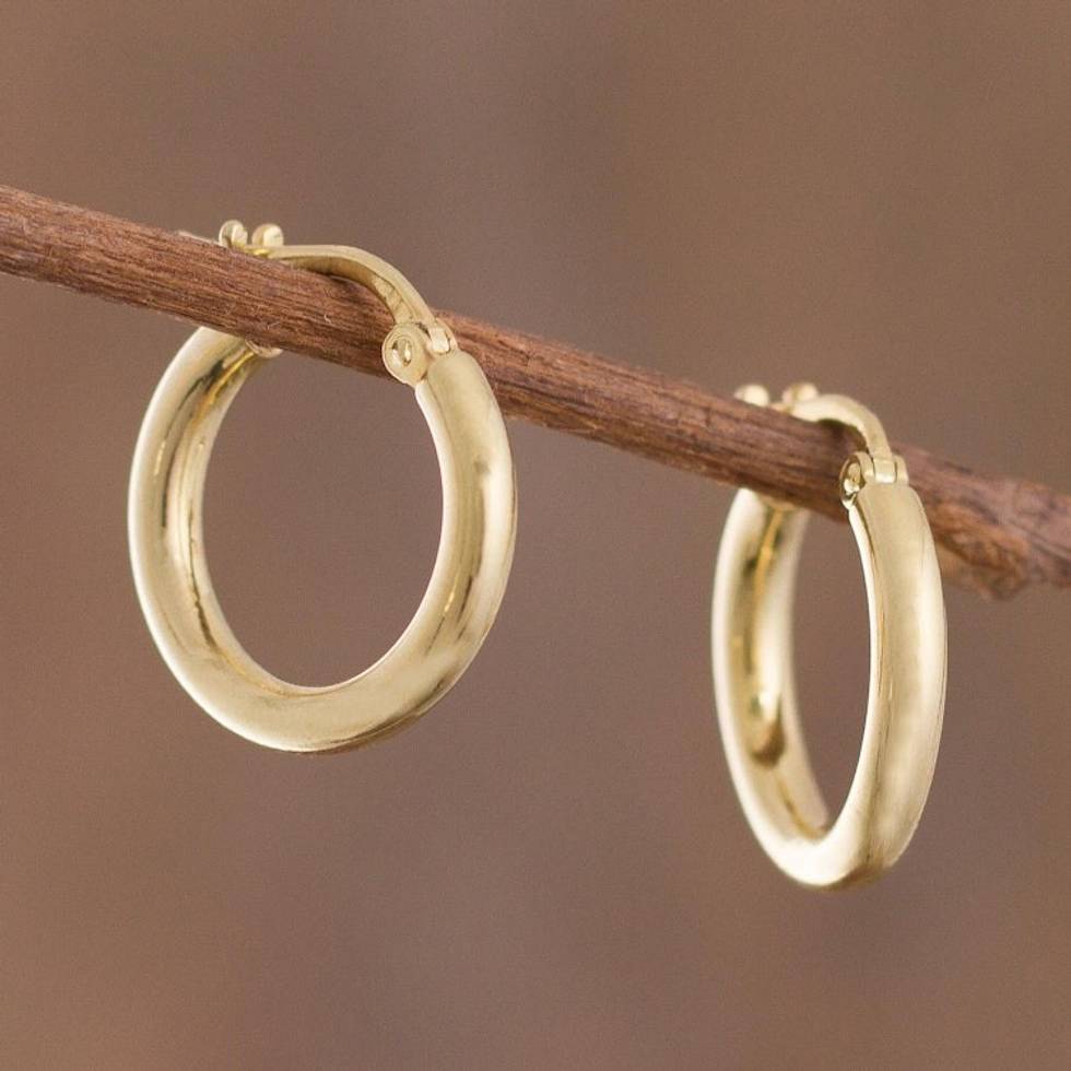18k Gold Plated Sterling Silver Hoop Earrings from Peru 'Classic Sheen' Item ID: 2669919372