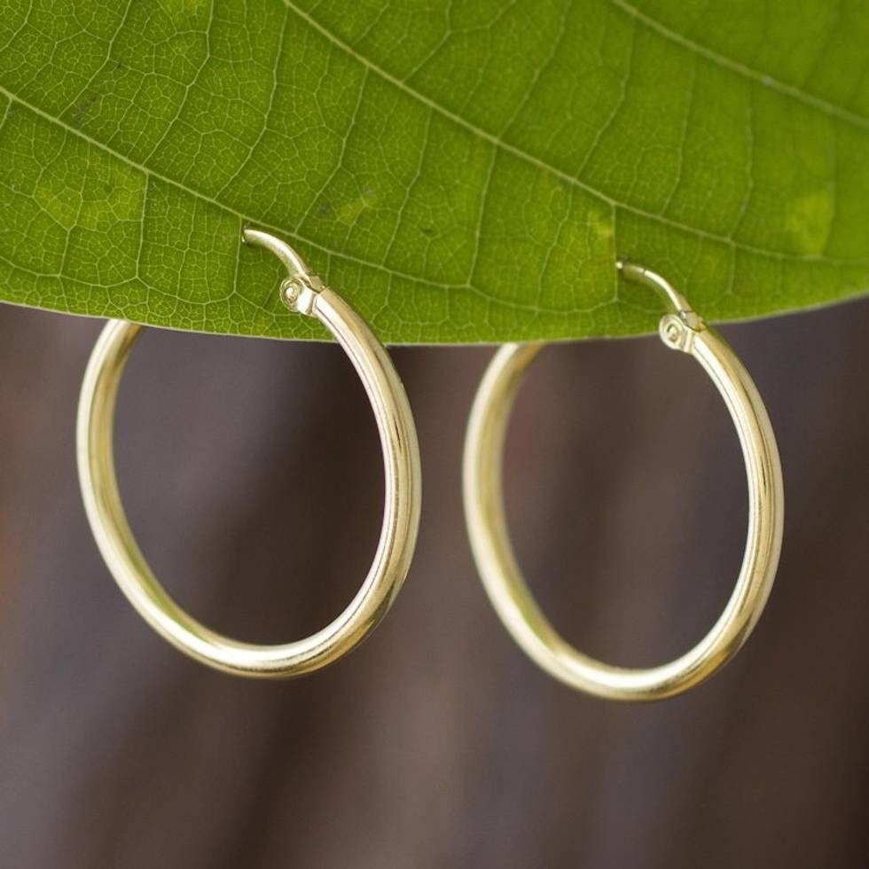 18k Gold Plated Sterling Silver Hoop Earrings from Peru 'Eternal Gleam' Item ID: 2671819456