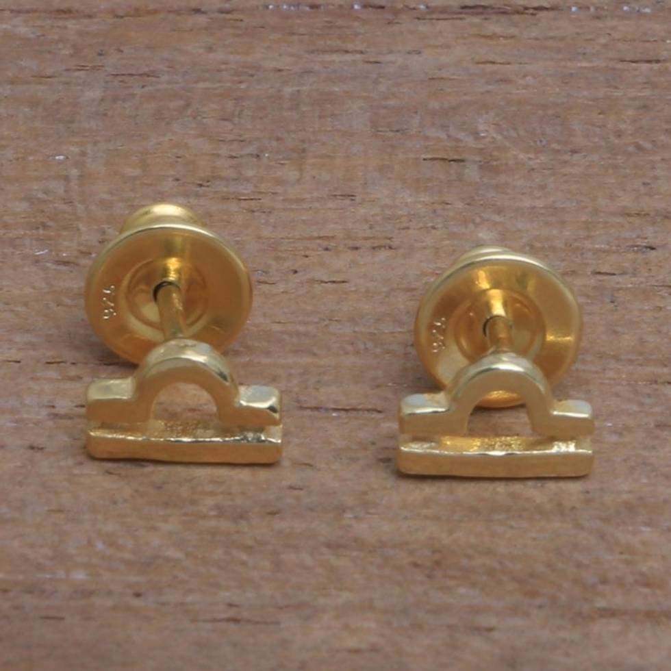 18k Gold Plated Sterling Silver Libra Stud Earrings 'Golden Libra' Item ID: 2671821562