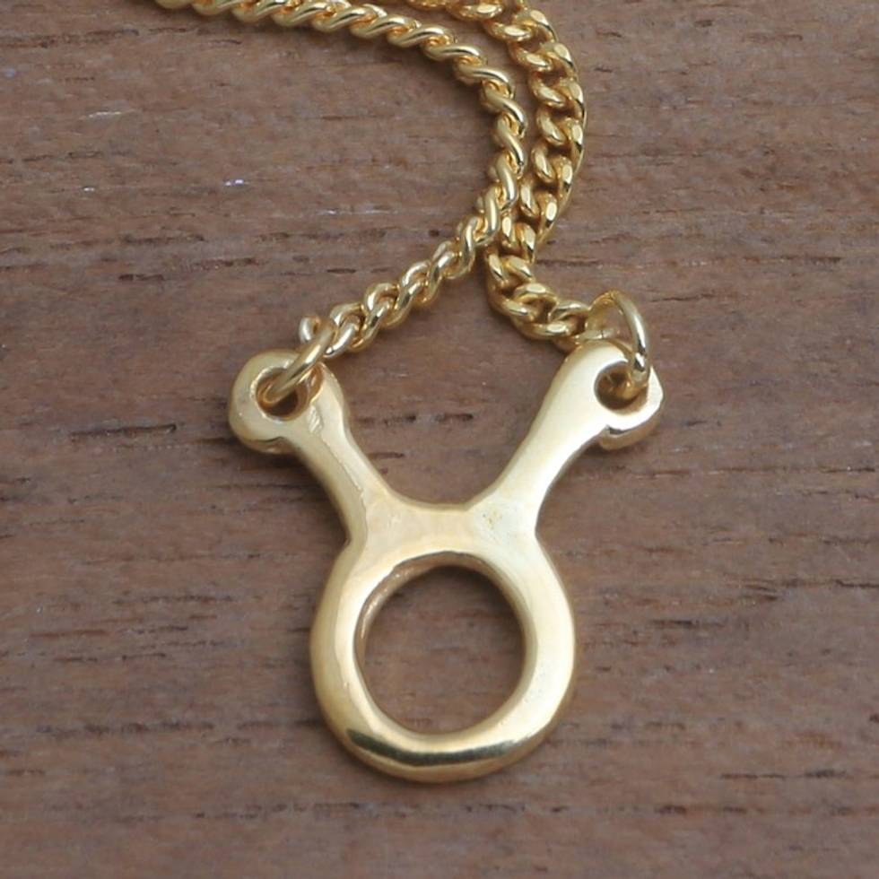 18k Gold Plated Sterling Silver Taurus Pendant Necklace 'Golden Taurus' Item ID: 2671735609