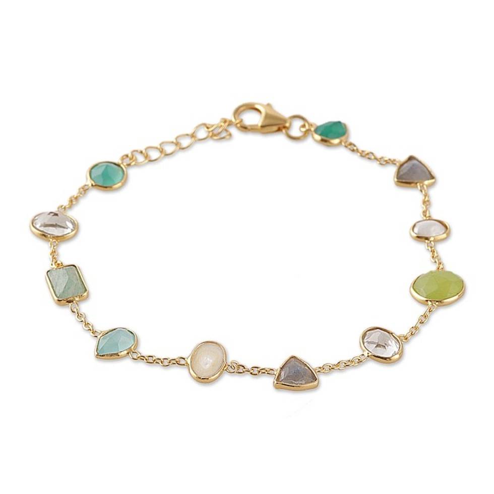 18k Gold-Plated Ten-Carat Multi-Gemstone Station Bracelet 'Harmonious Force' Item ID: 2671621960