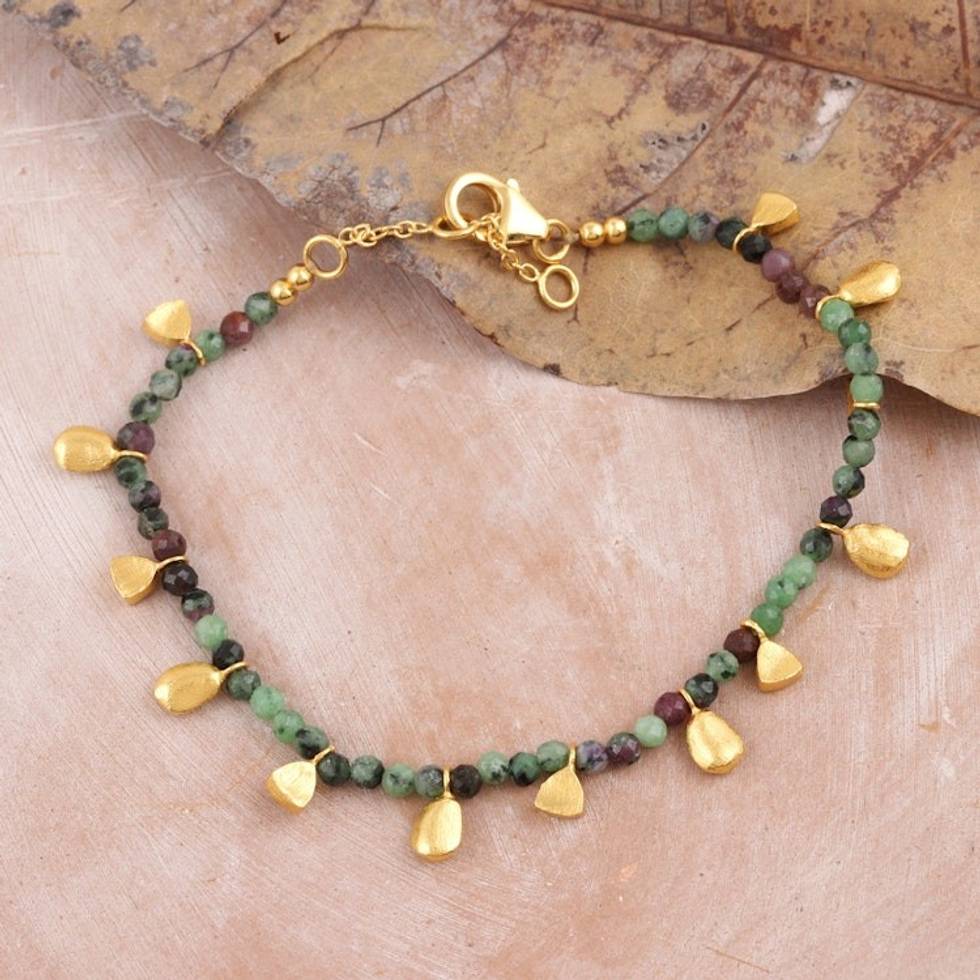 18k Gold-plated Zoisite Beaded Charm Bracelet from India 'Dangling Gold' Item ID: 2671625685