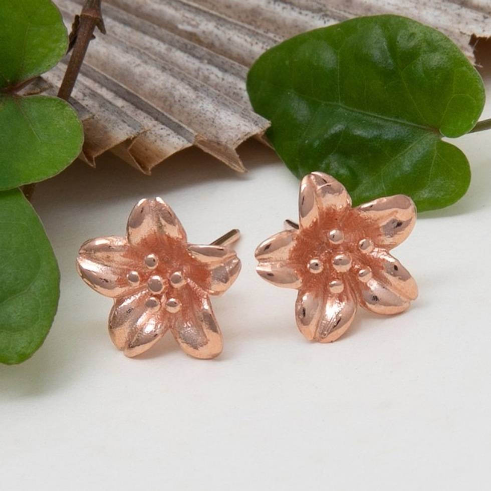 18k Rose Gold-Plated Floral Sterling Silver Button Earrings 'Spring Frangipani' Item ID: 2671764998