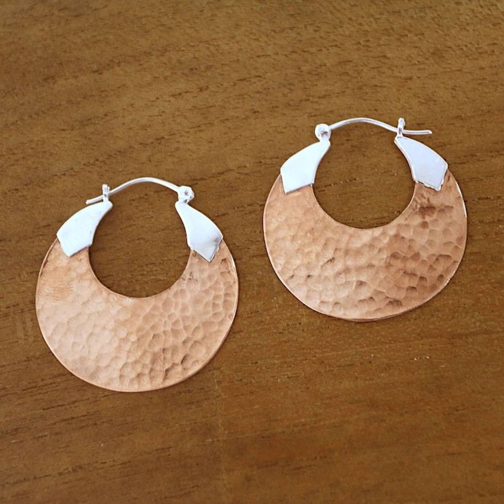 18K Rose Gold Plated Hammered Copper Hoop Earrings 'Radiant Reflections' Item ID: 2671821678