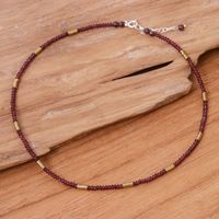 19-Carat Natural Garnet and Hematite Beaded Strand Necklace 'Crimson Glam' Item ID: 2676653139