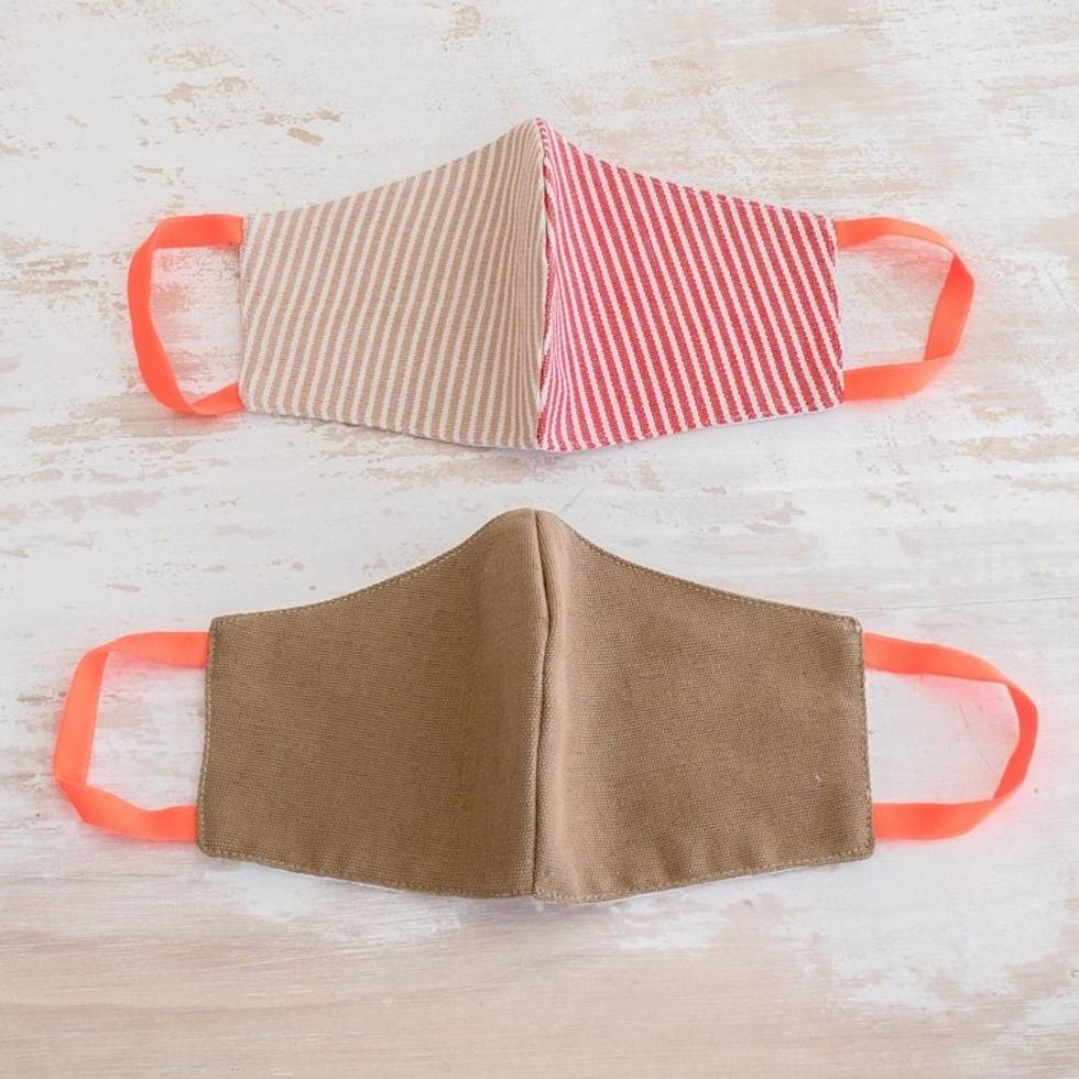 2 Adults Handwoven Cotton Masks in Brown-Red Stripes Brown 'Candy Stripe Brown' Item ID: 2671777116