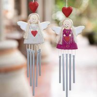 2 Angel and Heart-Themed Wood and Natural Fiber Wind Chimes 'Twinning Hearts' Item ID: 2676662500