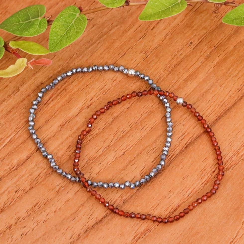 2 Beaded Stretch Bracelets with Chalcedony and Hematite Gems 'Double Flair' Item ID: 2671797047