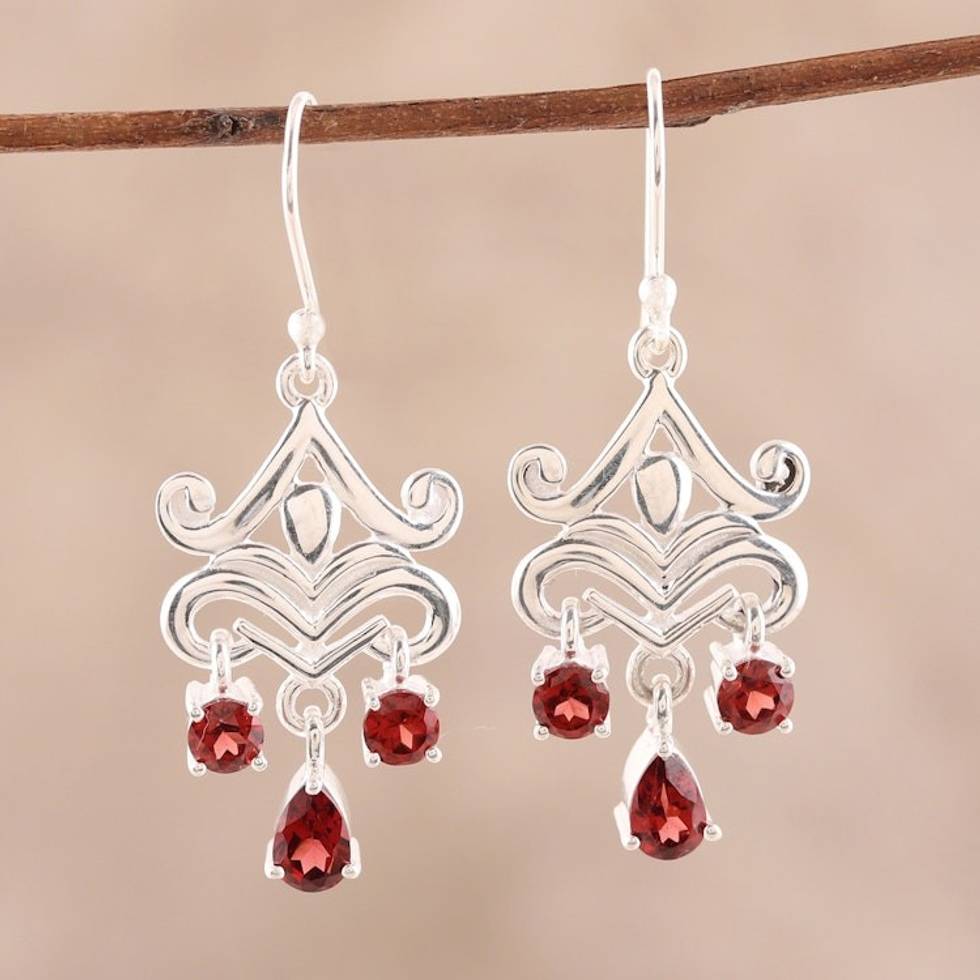 2-Carat Garnet Dangle Earrings from India 'Glimmering Dance' Item ID: 2671792561