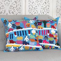 2 Cotton Cushion Covers with Hand Embroidery and Patchwork 'City Life' Item ID: 2671786607