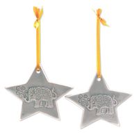 2 Elephant Star-Themed Celadon Ceramic Christmas Ornaments 'Lucky Elephant Stars' Item ID: 2676653187