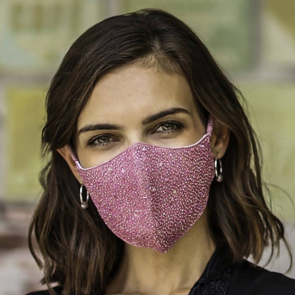 2 Hand Beaded Cotton Contoured Face Masks in Black and Pink 'Feminine Glam' Item ID: 2671737643