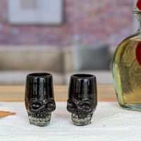 2 Handblown Recycled Glass Black Skull Tequila Glasses 'Black Mexican Skull' Item ID: 2671639269