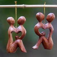 2 Heart Shaped Romantic Ornaments Hand Carved Wood Sculpture 'Look Into My Eyes' Item ID: 2671702165