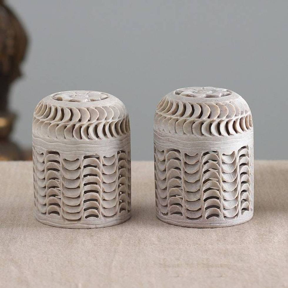 2 Jali Openwork Floral-Themed Soapstone Decorative Jars 'Spiral Enigma' Item ID: 2676664347