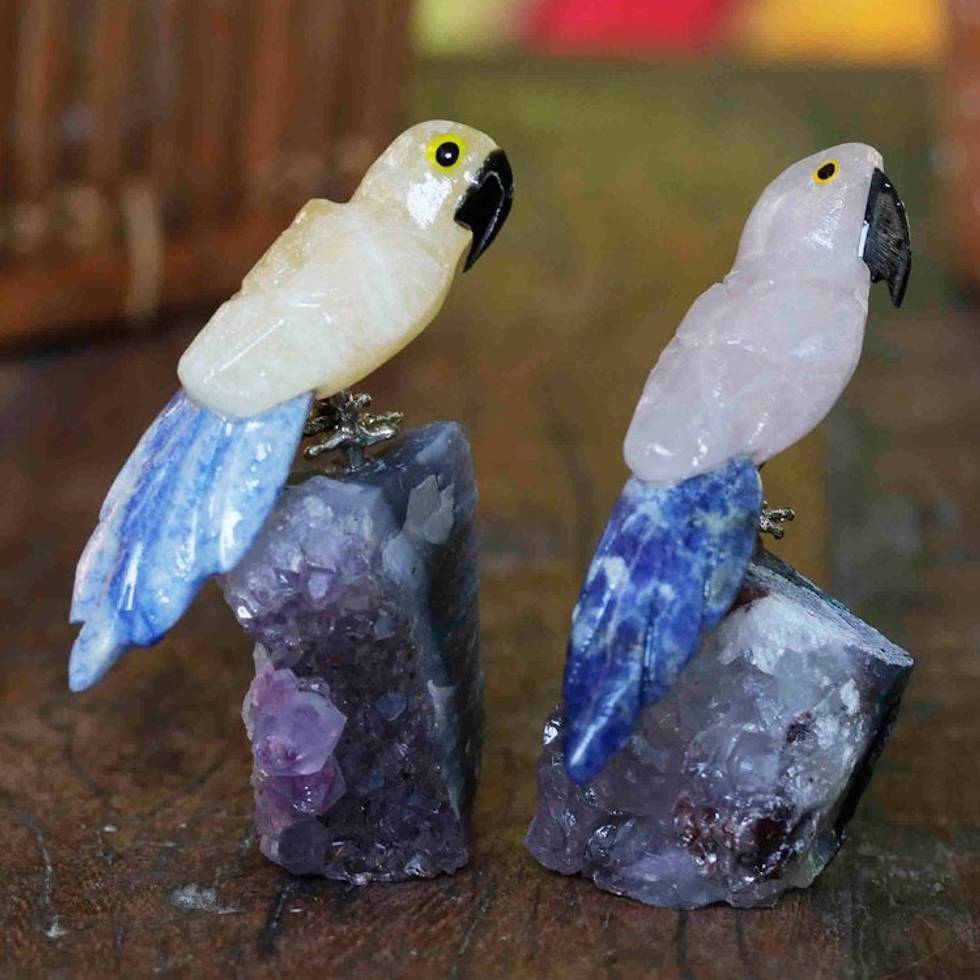 2 Multi-Gemstone Macaw Figurines Handmade in Brazil 'Macaw Twosome' Item ID: 2669935375