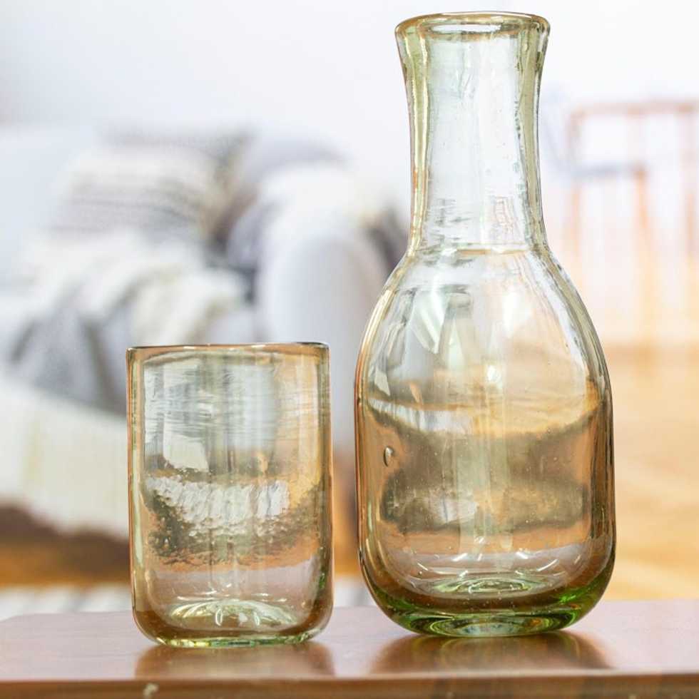 2-Piece Set of Recycled Glass Handblown Carafe and Glass 'Cheers' Item ID: 2669897992