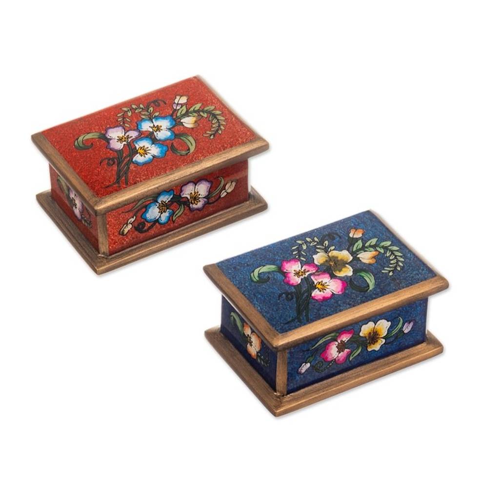 2 Red and Blue Reverse Painted Glass Floral Decorative Boxes 'Precious Garden' Item ID: 2671698052