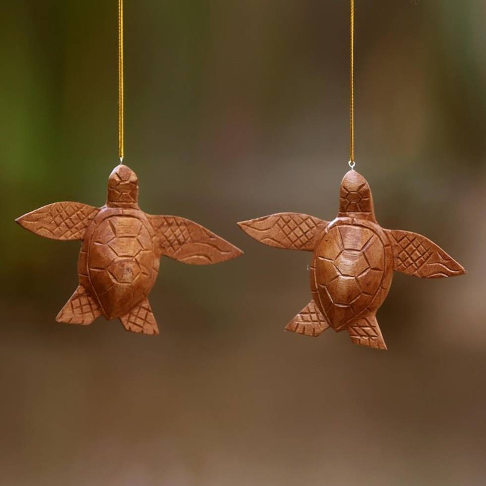 2 Turtle Wood Ornaments Artisan Crafted in Indonesia 'Patient Turtle' Item ID: 2669891655