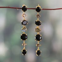21-Carat Faceted Multi-Gemstone Gold-Plated Dangle Earrings 'Victorious Darkness' Item ID: 2671781303
