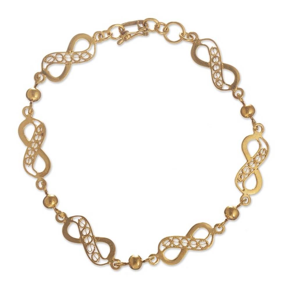 21K Gold Plated Silver Chain Bracelet with Infinity Symbols 'Beaded Infinity' Item ID: 2671401127