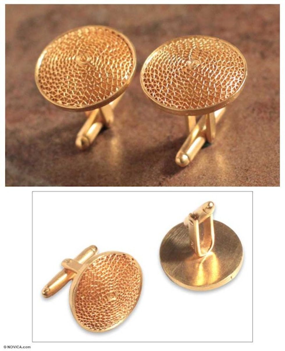 21k Gold-Plated Silver Filigree Cufflinks Hancrafted in Peru 'Starlit Sun' Item ID: 2671691001