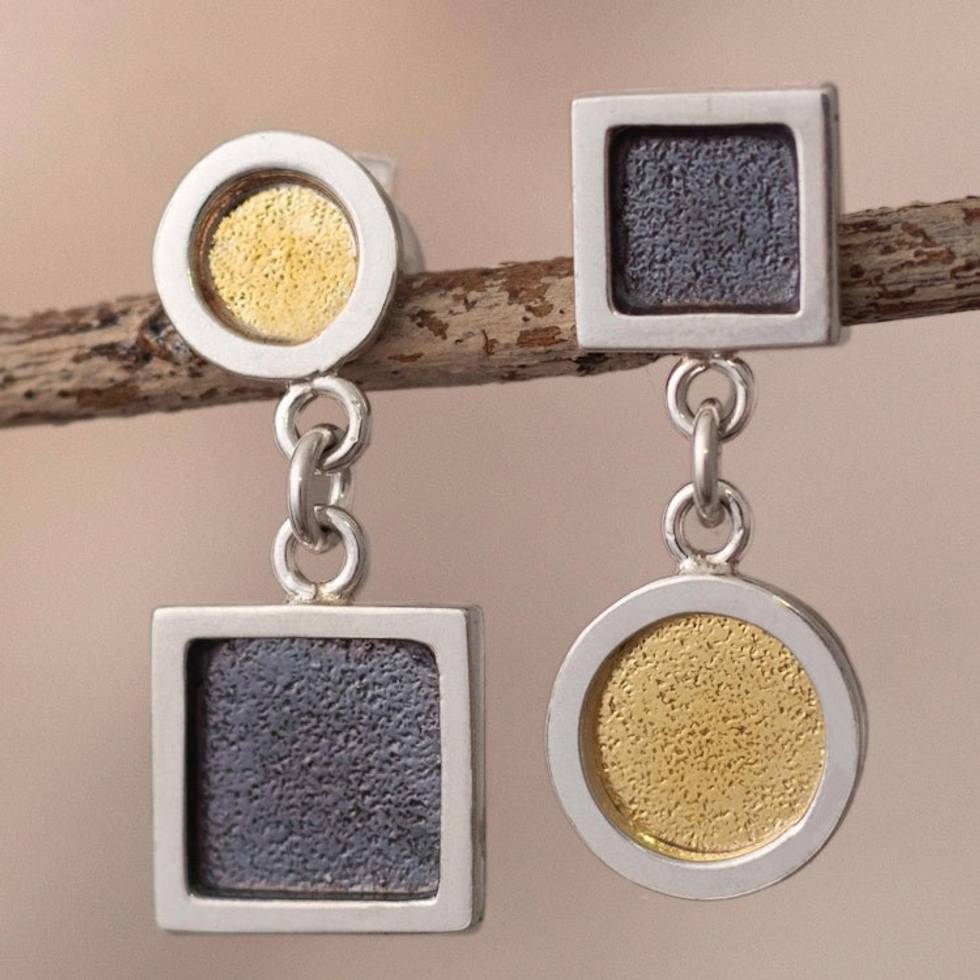 22k Gold Accented Geometric Dangle Earrings 'Opposition' Item ID: 2671691185