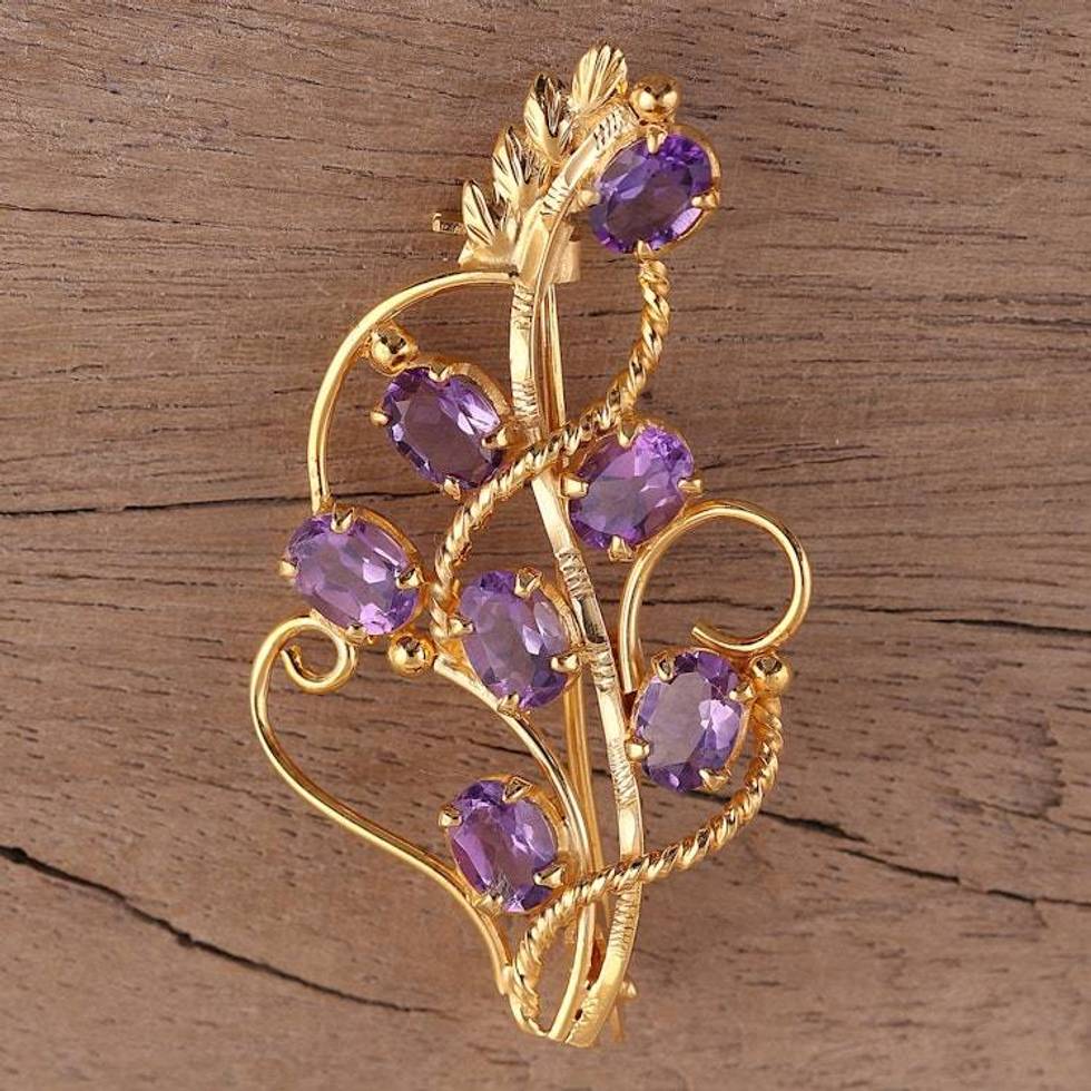 22k Gold Plated 7 Carat Amethyst Handcrafted Lilac Brooch 'Golden Lilac' Item ID: 2676663729