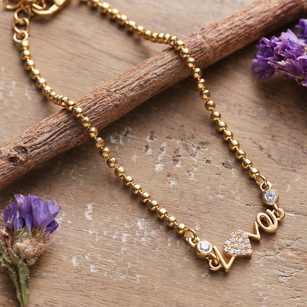22k Gold-Plated Cubic Zirconia Love Pendant Bracelet 'Golden Love' Item ID: 2671781447