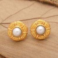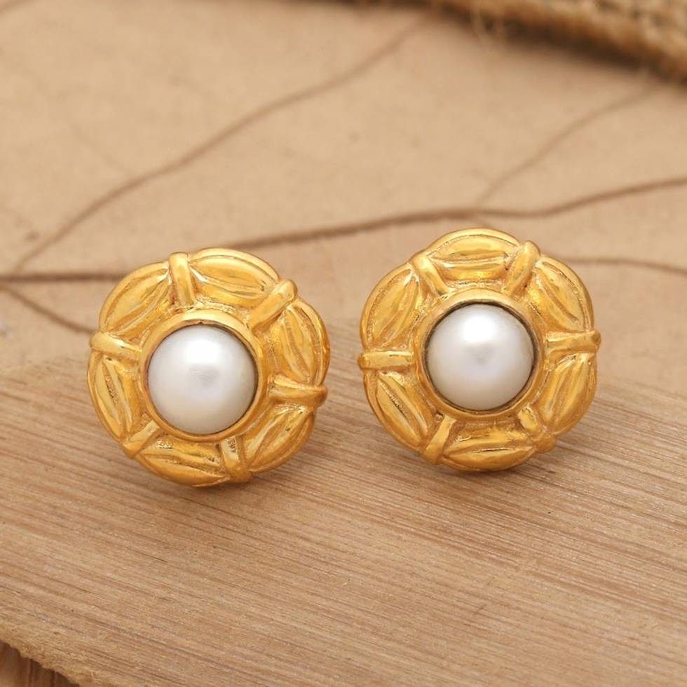 22k Gold-plated Cultured Pearl Umbrella Button Earrings 'Pearly Umbrella' Item ID: 2671765097