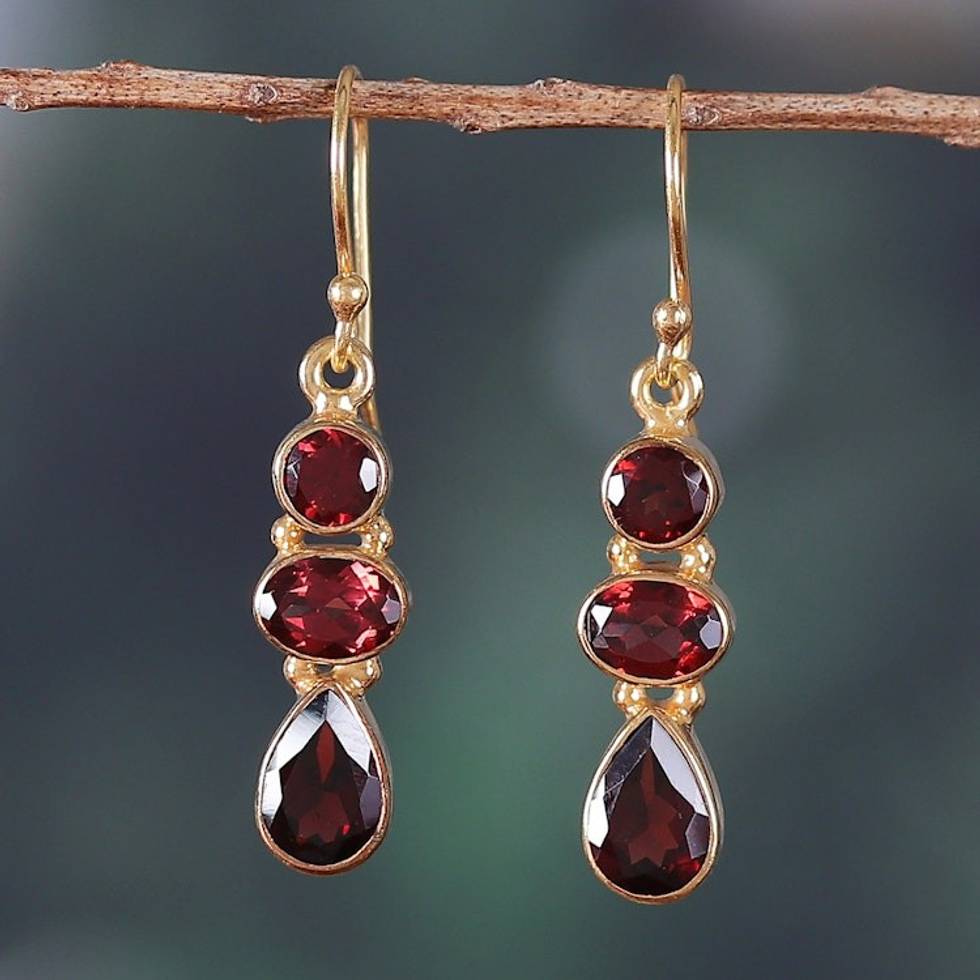 22k Gold-Plated Dangle Earrings with 6-Carat Garnet Gems 'Crimson Dazzle' Item ID: 2671622454